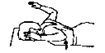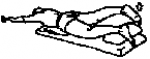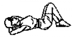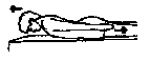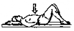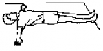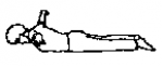 Bauchlage. Das Gesicht zeigt zur Unterlage. Die Arme sind seitlich abgespreizt, die Ellenbogen rechtwinklig gebeugt. Die Ellenbogen und Unterarme von der Unterlage abheben, wobei die Schulterblätter in Richtung Wirbelsäule zusammengezogen werden. 2-3 Mal wiederholen