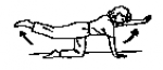 Vierfüßlerstand. Den Arm und das gegenseitige Bein in eine waagerechte Stellung heben. Diese Stellung 5-10 sec. halten. Der Rumpf bleibt ruhig. Die Übung 2-3 mal wiederholen.