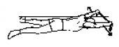 Bauchlage, die Arme über dem Kopf auf dem Boden (bei bedarf ein Kissen unter dem Bauch oder dem Rist). Den einen Arm und das entgegengesetzte Bein ca. 20 cm über den Boden heben und den Rücken lang ziehen. Ca. 10 sec. halten – entspannen. Die Bewegung mit dem anderen Arm und Bein wiederholen. Die Übung 2-3 mal wiederholen.